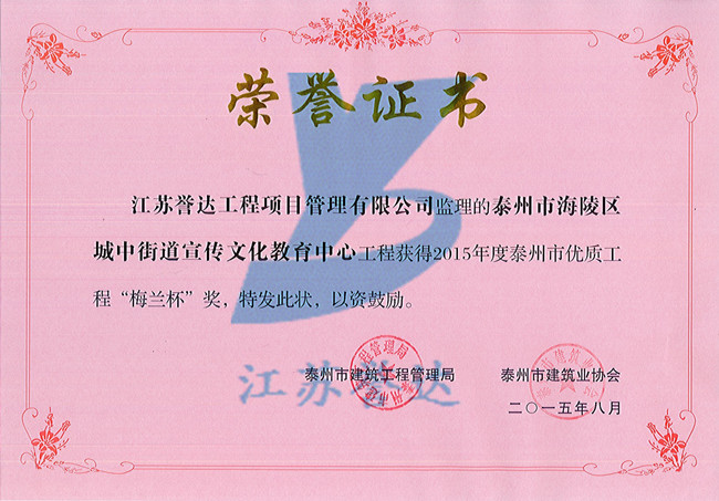 2015度泰州市優質工程“梅蘭杯”獎